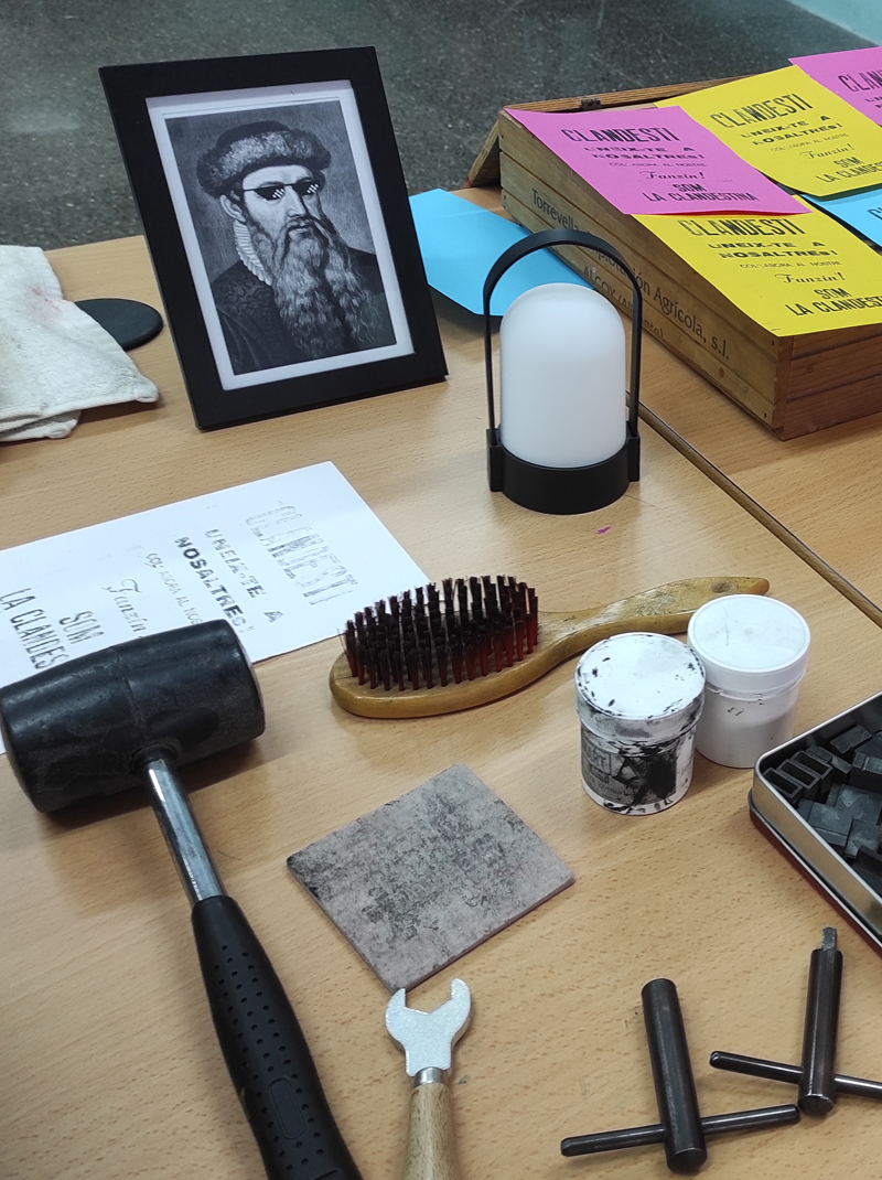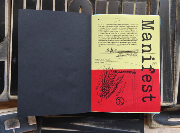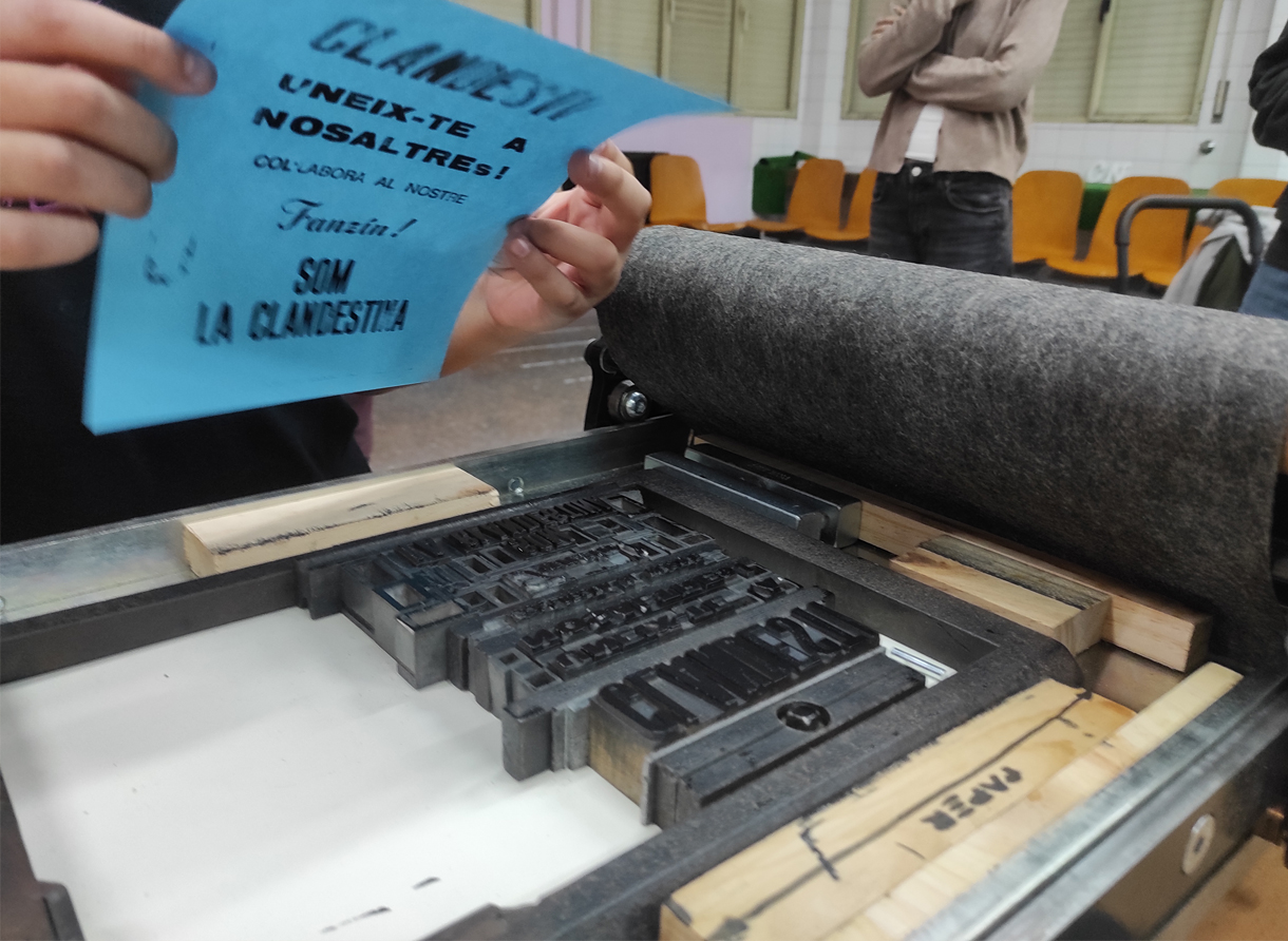 La Clandestina es una residencia artística educativa realizada con alumnado de Primaria en la que el centro escolar se transformó durante varias semanas en una imprenta clandestina. A partir de una narrativa de ficción —un gran apagón eléctrico— el alumnado adoptó nuevas identidades y oficios para aprender a comunicarse y crear colectivamente sin recurrir a la electricidad.