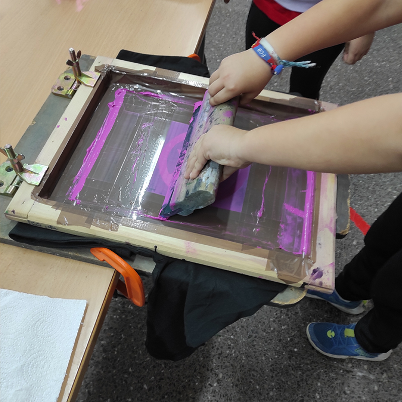Gracias a esto, el alumnado construyó un pequeño universo creativo donde cada participante asumía un papel dentro de una imprenta colectiva, dando forma a carteles, pancartas, camisetas serigrafiadas y un fanzine que recoge la memoria del proceso.